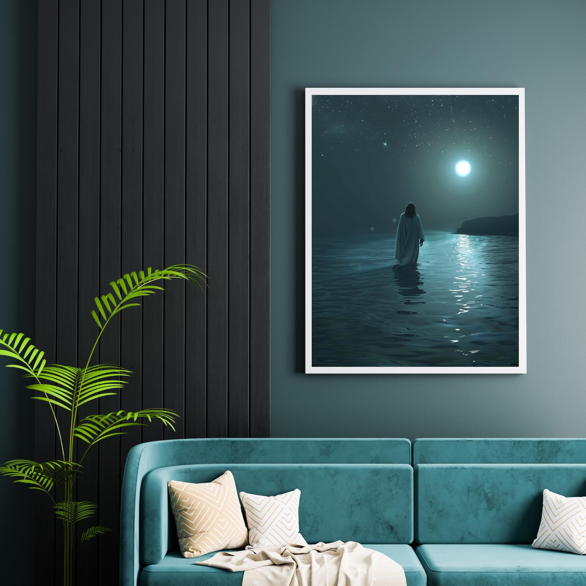 Bring peace, courage, and divine presence into your home with this stunning Jesus Walks on Water printable art collection. Inspired by one of Scripture’s most powerful miracles, this set blends cinematic realism with serene coastal tones — creating a faith-filled atmosphere that calms the heart and strengthens the spirit.