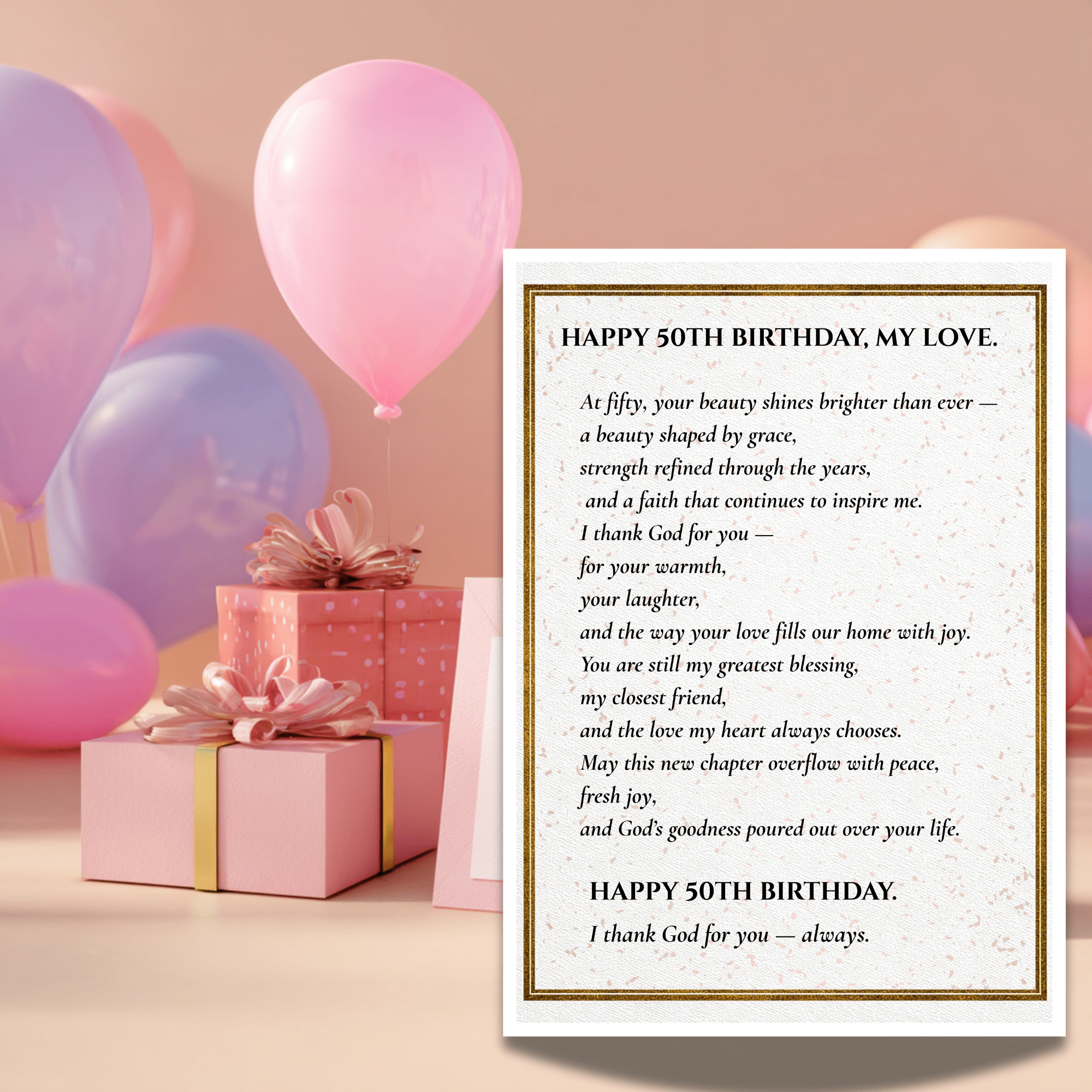 ✨ Christian 50th Birthday Blessing for Wife — Printable Milestone Prayer Card