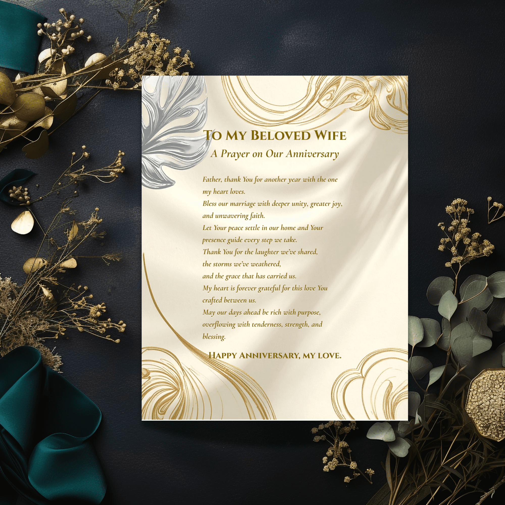 Celebrate your marriage with a meaningful Christian Anniversary Prayer for your wife — a heartfelt blessing beautifully designed for gifting, framing, or displaying in your home.