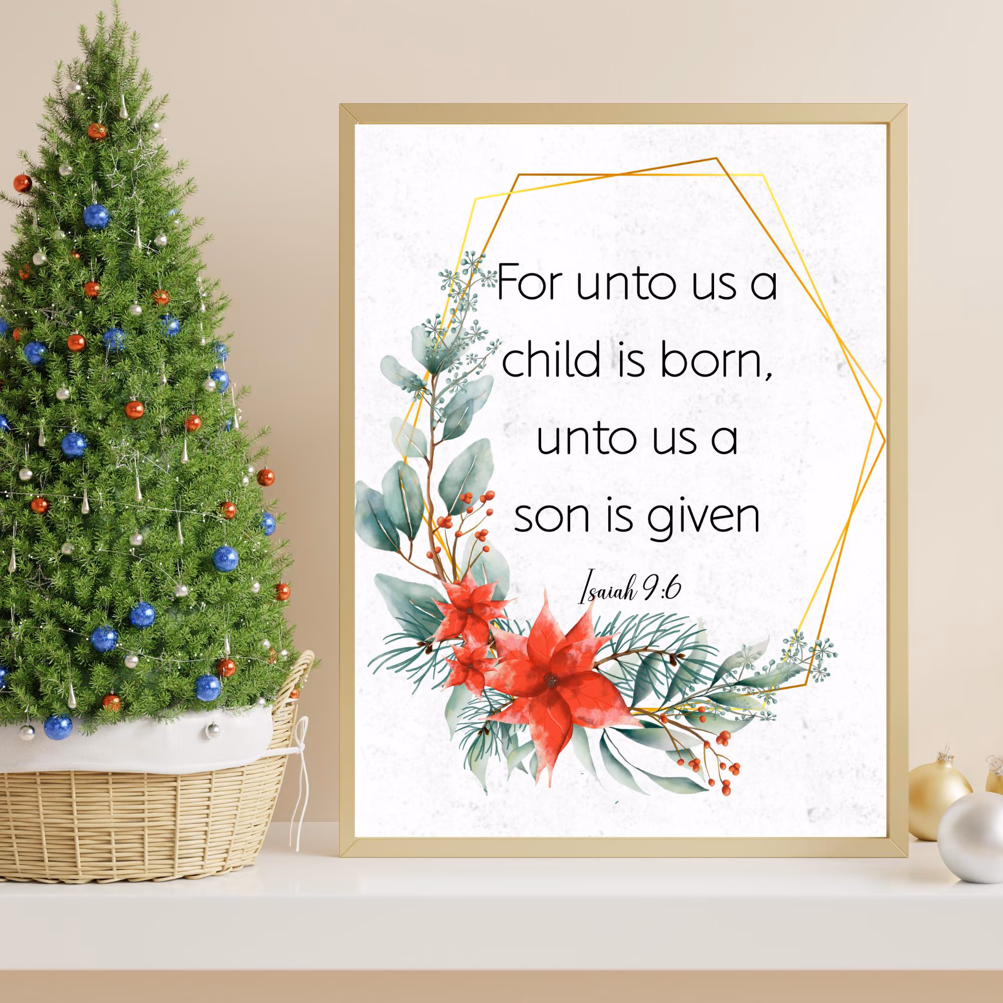 Celebrate the true meaning of the season with this Christmas Bible Verse Wall Art, beautifully designed with elegant poinsettias and timeless scripture. Available as an instant digital download (PDF printables), this artwork is perfect for printing at home or through your favorite print shop.