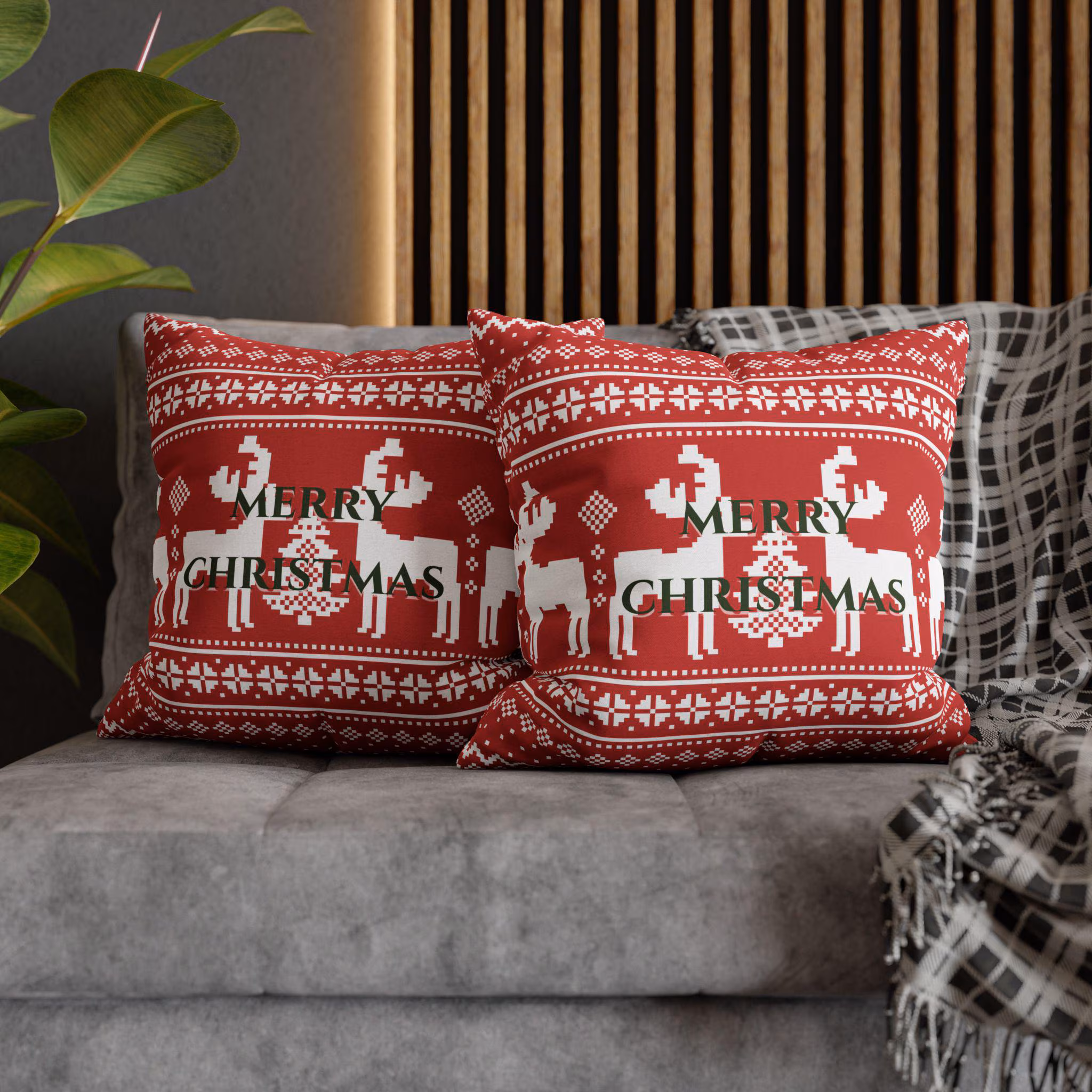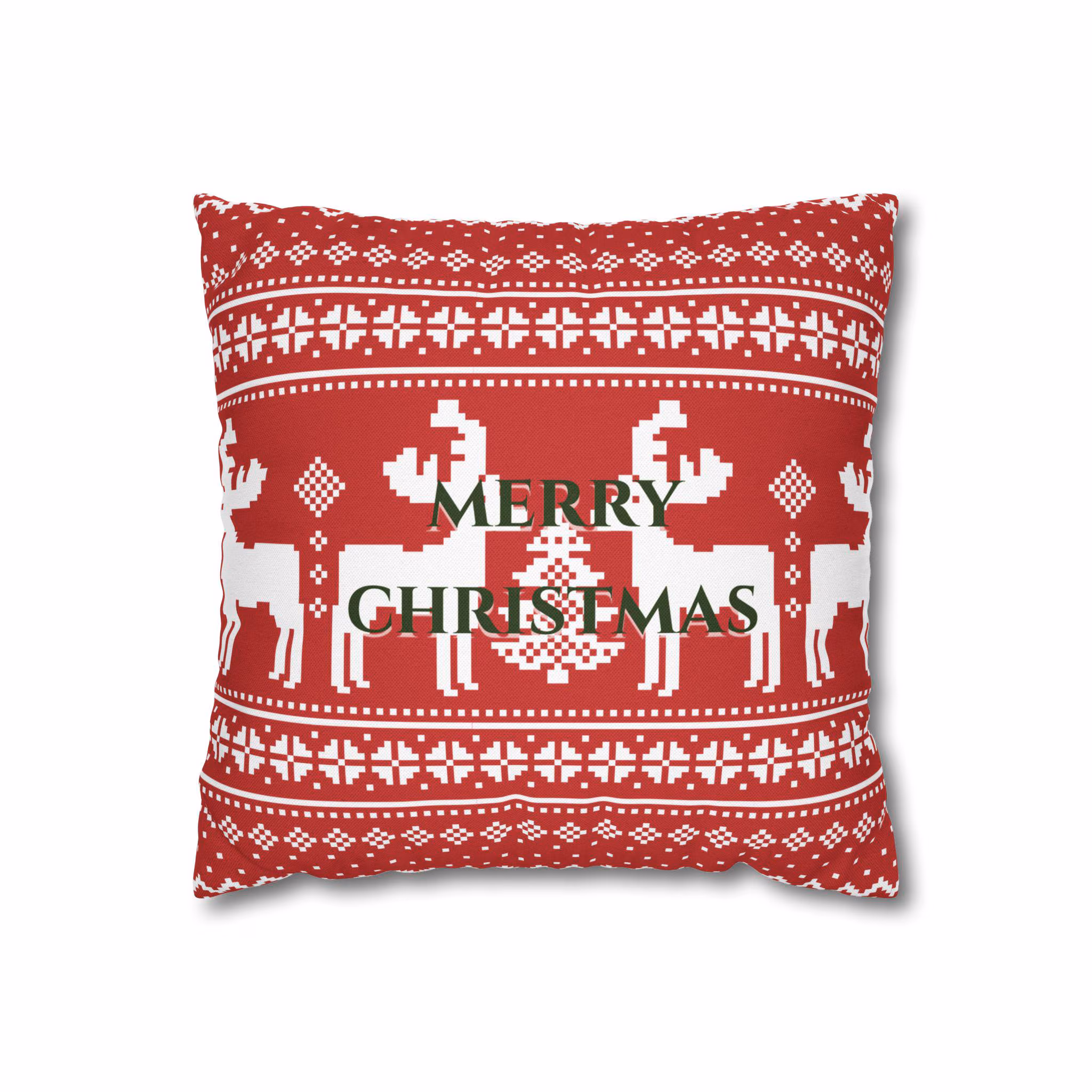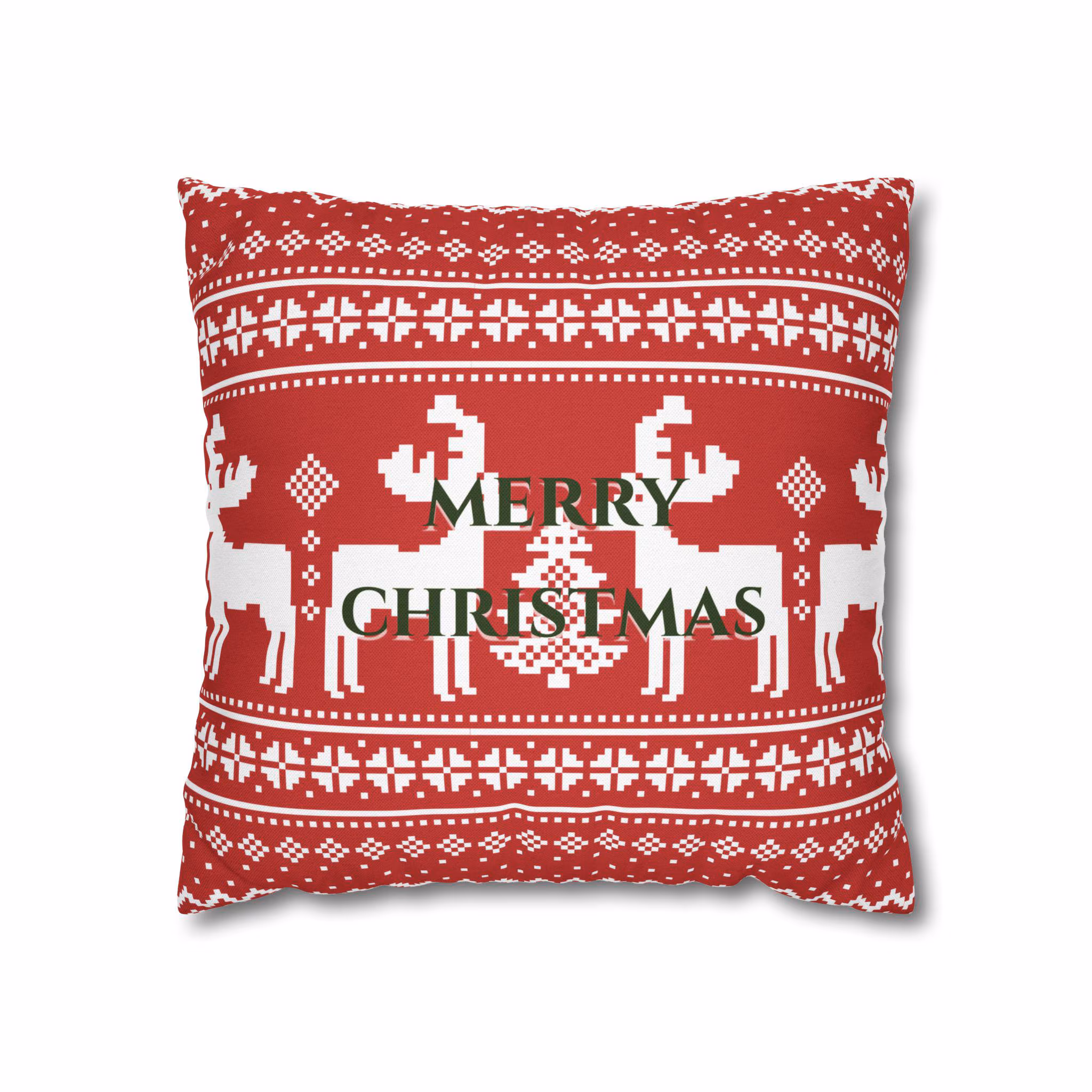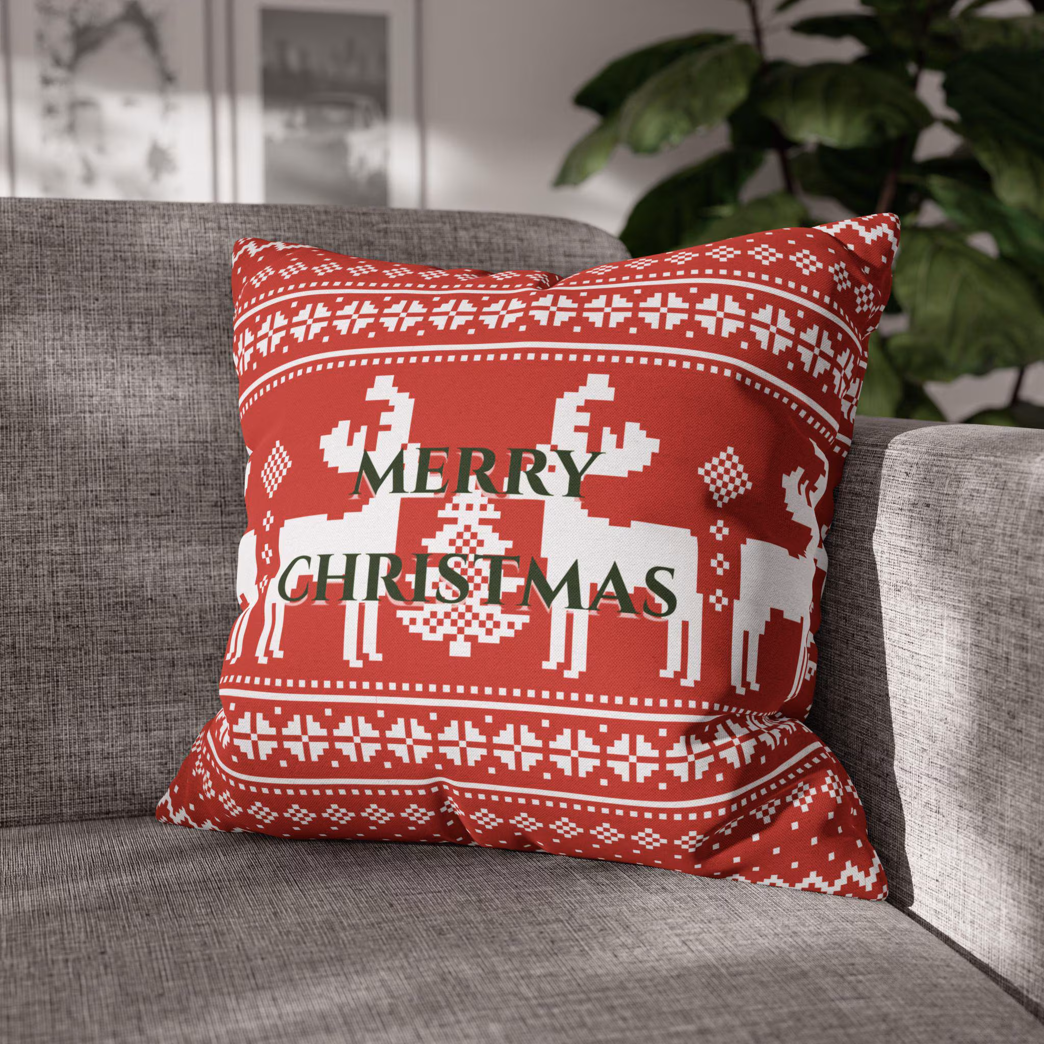 This festive red Nordic-style pillow cover brings timeless Christmas charm to any space. Featuring a classic reindeer and snowflake knit pattern with a cheerful “Merry Christmas” greeting, it’s perfect for couches, beds, and cozy corners.