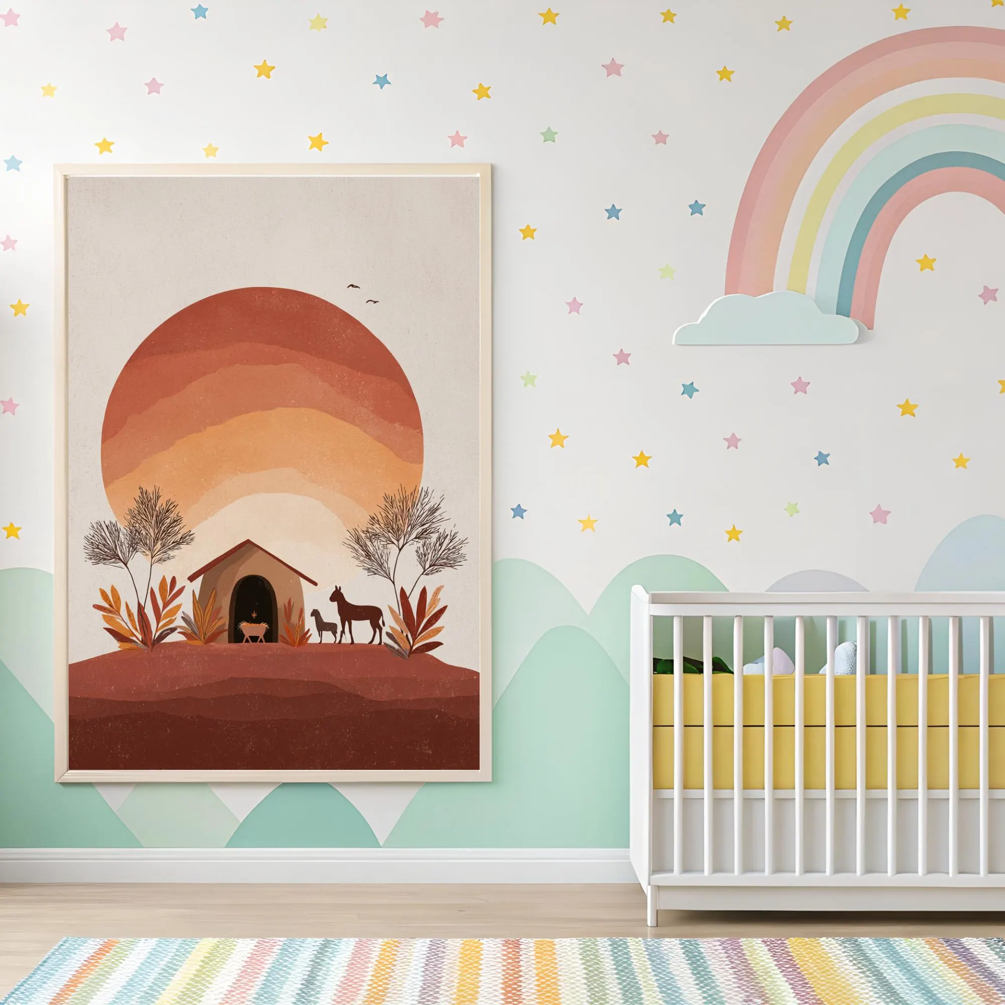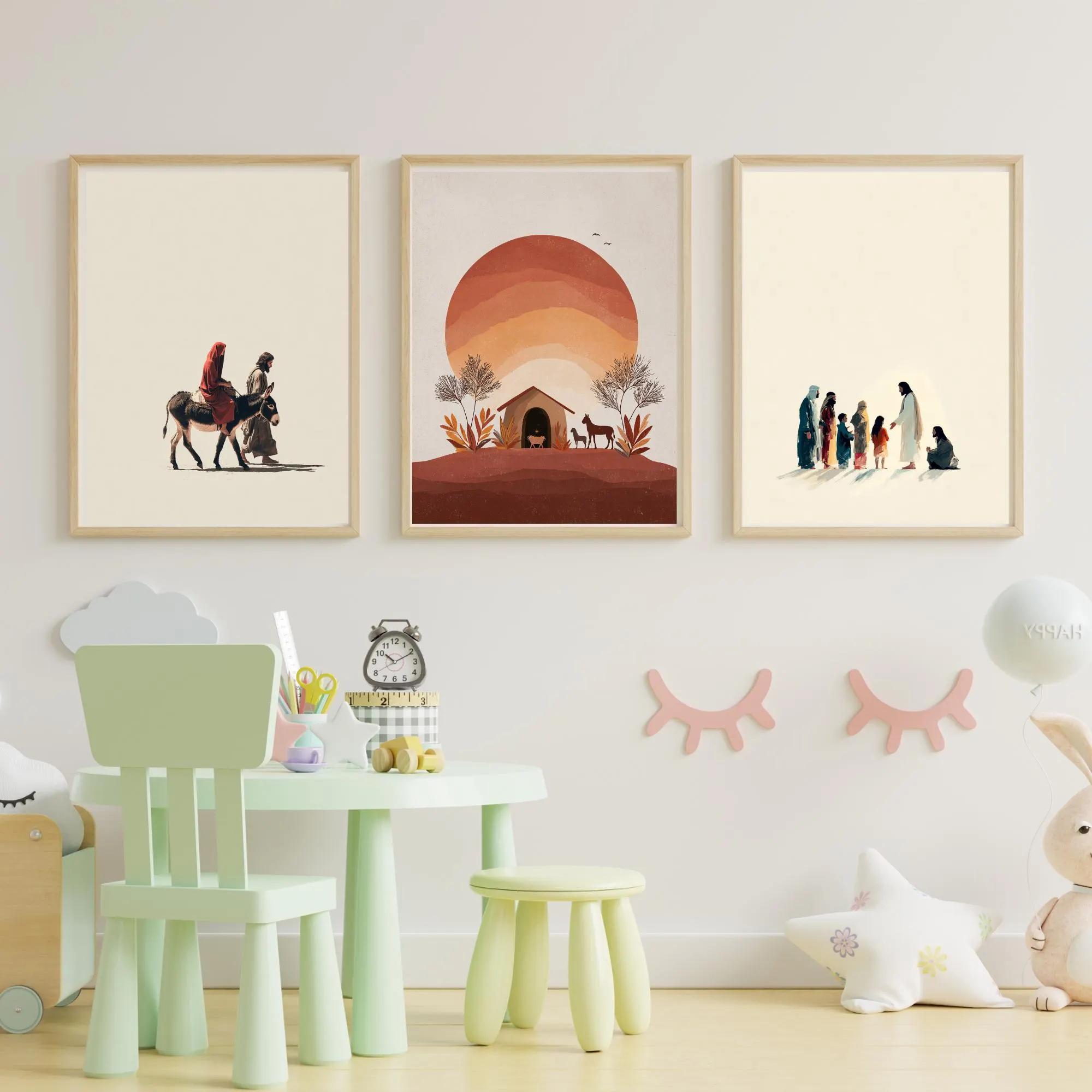 ✔️ Faith-inspired nursery art that tells the Christmas story through minimalist design