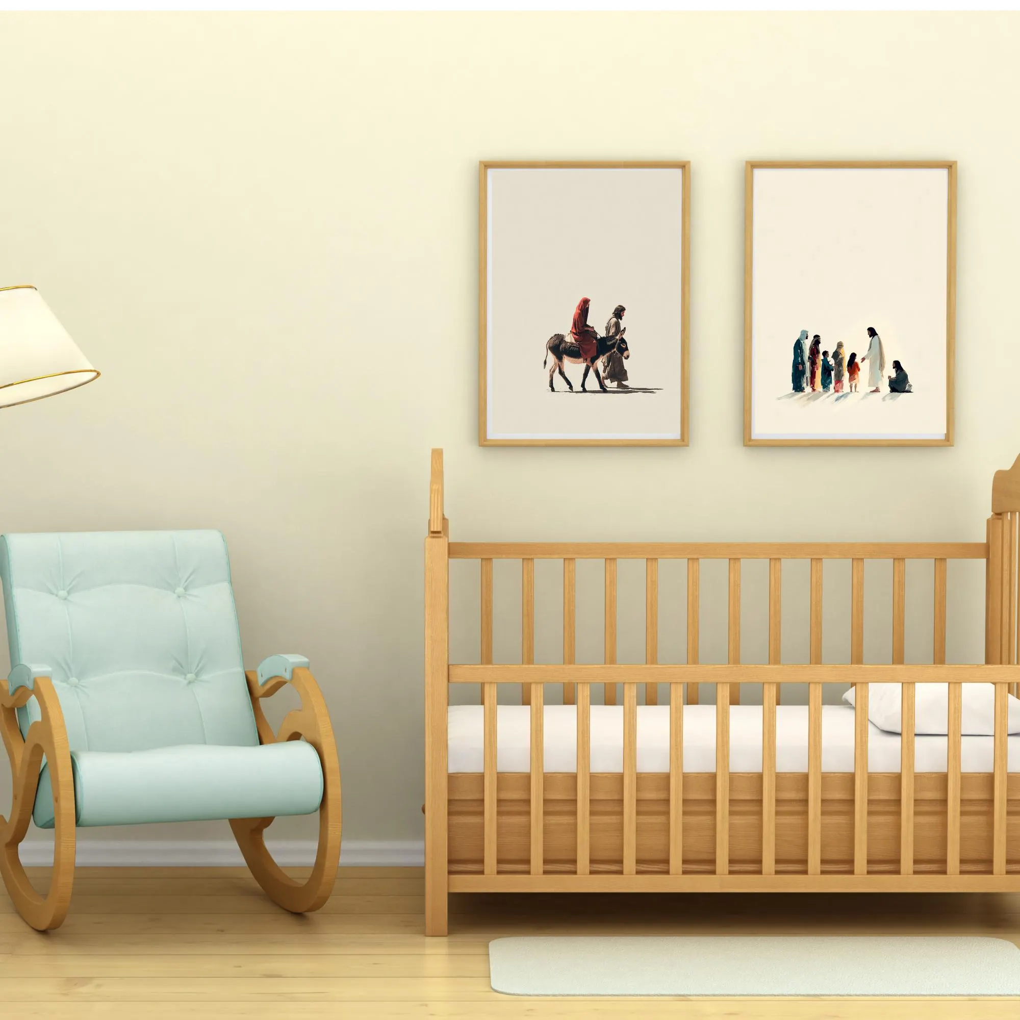 Bring peace, wonder, and faith into your child’s space with this Minimalist Christian nursery wall art set, inspired by the timeless Christmas story of Jesus’ birth. This 3-piece printable collection beautifully captures the Journey to Bethlehem, the Holy Manger Scene, and Jesus Blessing the Little Children — all rendered in a modern minimalist boho style that blends perfectly with today’s nurseries and Montessori-inspired rooms.