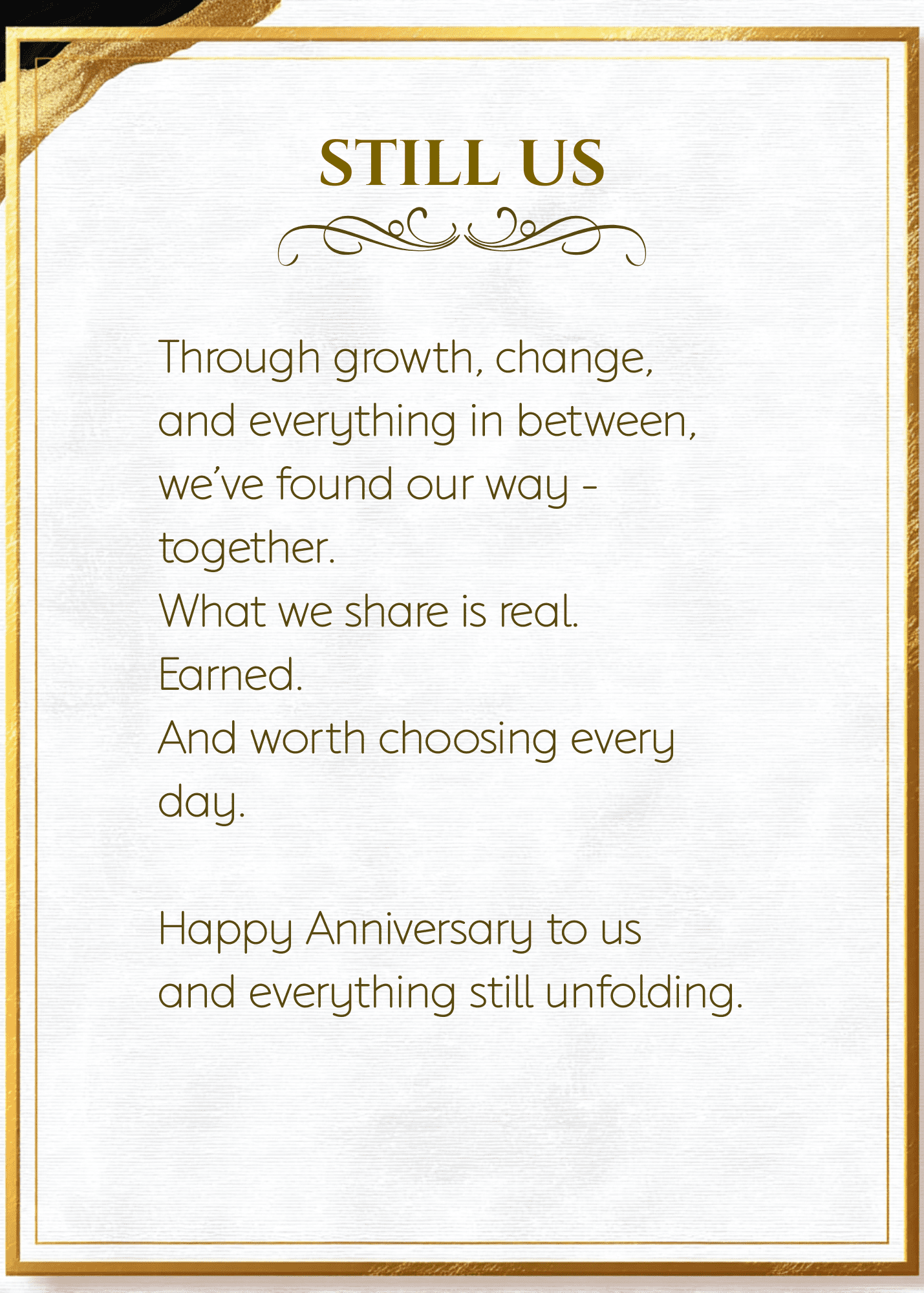 A modern anniversary card honoring enduring love through growth and change. Minimal, emotional, and intentional—perfect for couples who value depth over clichés.