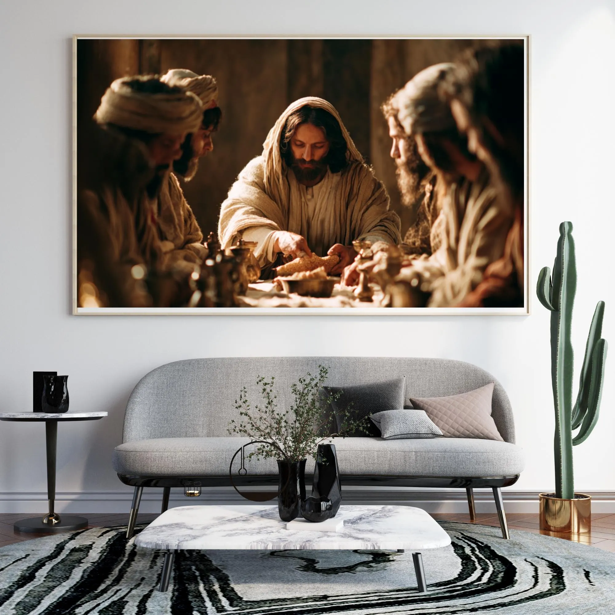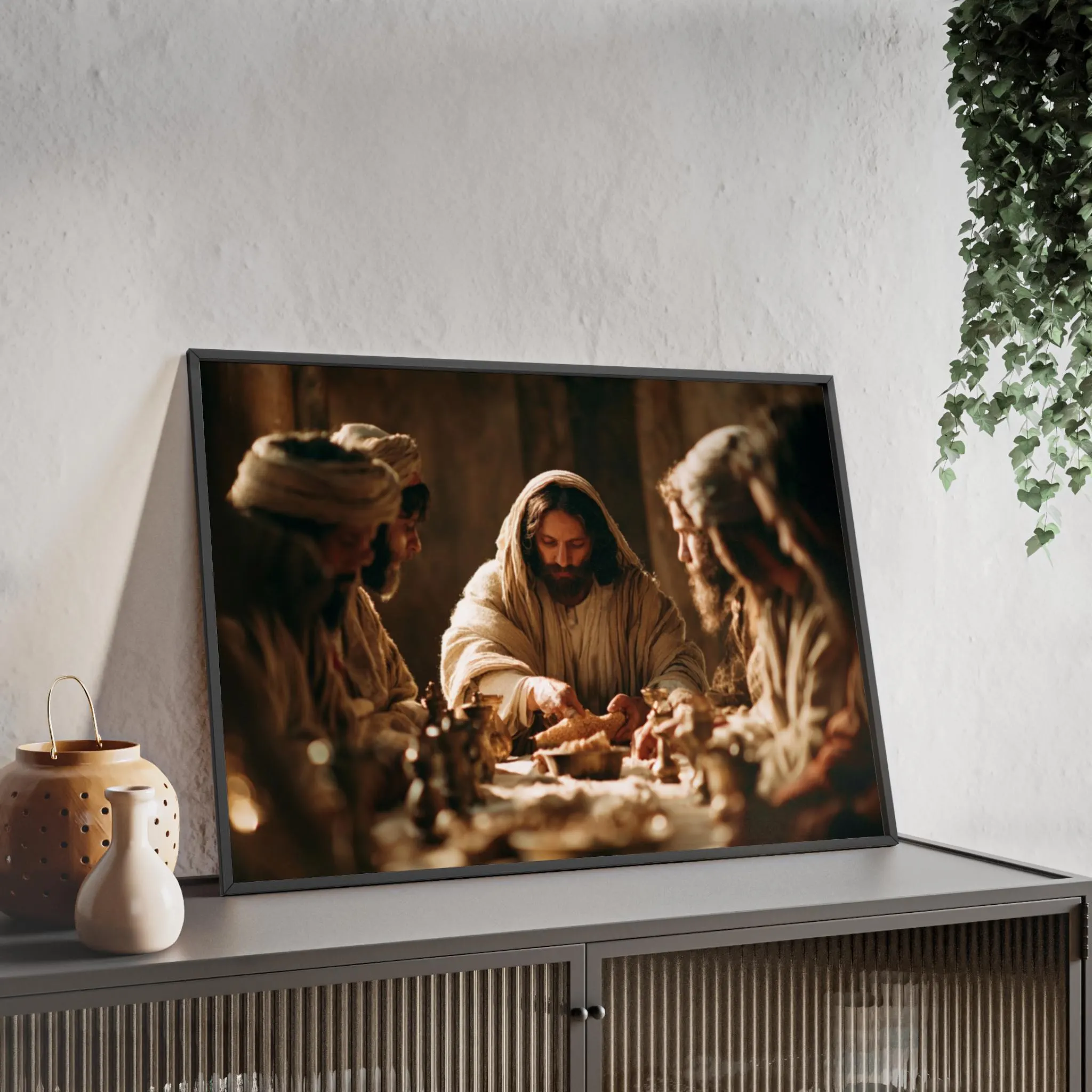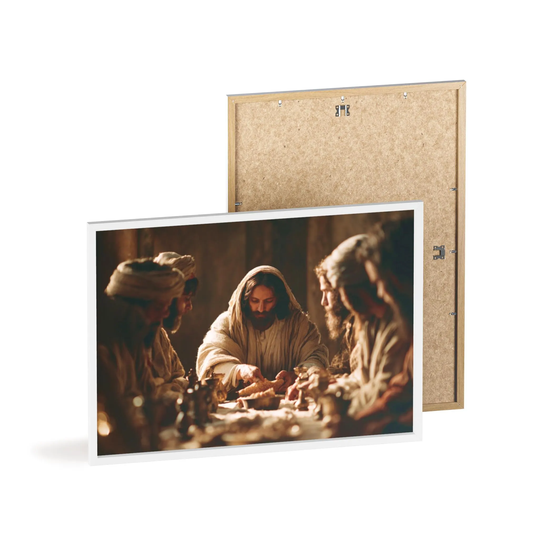 These vibrant posters with a wooden frame feature Jesus last supper breaking bread with his disciples, creating a serene and spiritual atmosphere. Perfect for Christians looking to add a touch of faith to their home decor. Ideal for religious holidays like Easter and Christmas.
